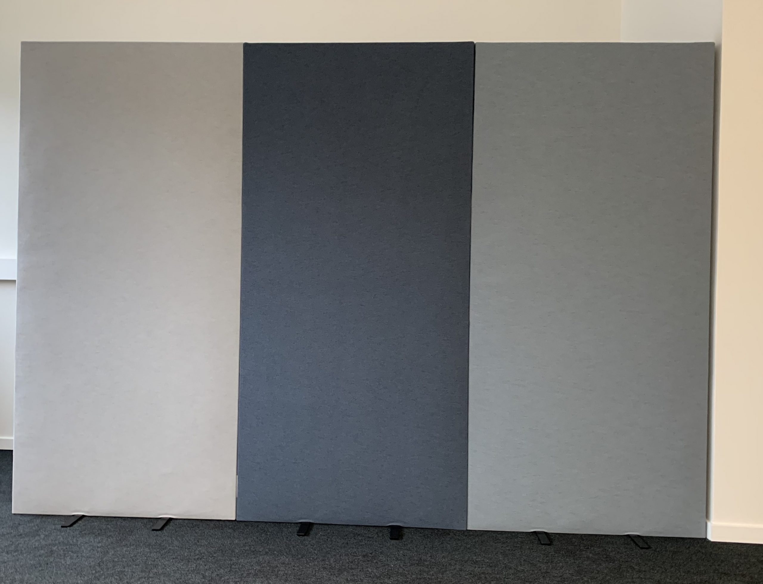 Les grands espaces ouverts présentent très souvent un défi acoustique. Une bonne solution pour améliorer l’acoustique dans les grandes pièces est de diviser la pièce en pièces plus petites, en créant des coins. Les cloisons acoustiques d’AcoustiComfort sont la solution idéale pour cela. Le noyau solide du panneau rend le son beaucoup moins audible dans la pièce adjacente, le matériau absorbant des deux côtés abaisse le niveau de pression acoustique à la fois à l’avant et à l’arrière du panneau.